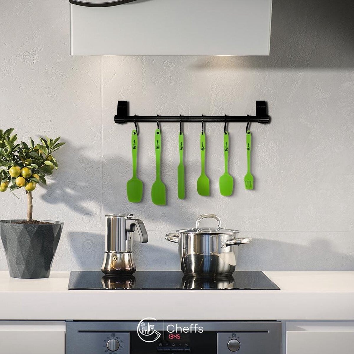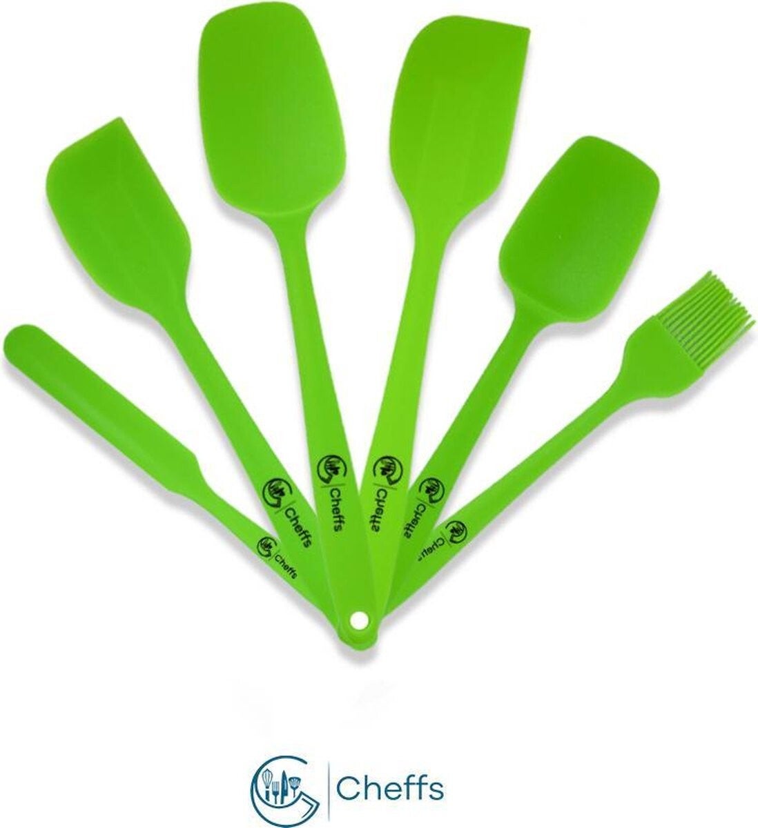 Cheffs® spatel - inclusief pannenlikker - 6 delige set - Vaatwasserbestendig - Hittebestendig - Groen